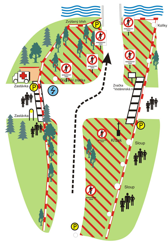 Známý přejezd hlavní silnice u Malče s vázaným odbočením vpravo a vlevo. Příjezd od obce Besednice nebo Kaplice nádraží po silnici II/157. Parkování vpravo na příjezdových komunikacích.