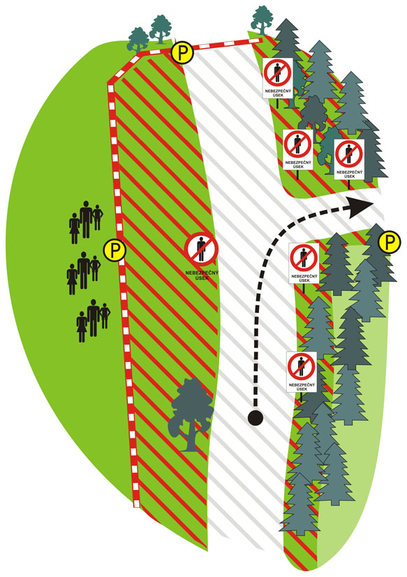 Těžké pravé odbočení do lesa po prudkém sjezdu s obtížným dobržděním. Dostatečný prostor pro diváky s dobrým výhledem z přírodní tribuny. Příjezd od Českého Krumlova přes Kájov po silnici I/39 s odbočením na Mezipotočí a Slavkov.