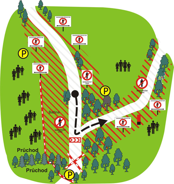 Kosa na ruční na přehledném místě. Příjezd od Kaplice nebo Benešova nad Černou po silnici číslo 154 přes obec Ličov. Parkování u obce Ličov. Divácké místo nedaleko Ličova je vytýčeno kvůli bažině tak, aby diváci nestáli v promočené části louky. Přechod od parkujících vozidel přes potok do diváckého místa je zajištěn.