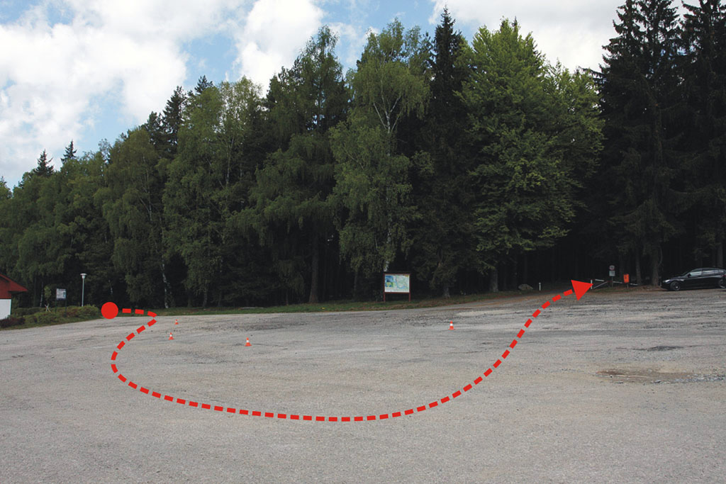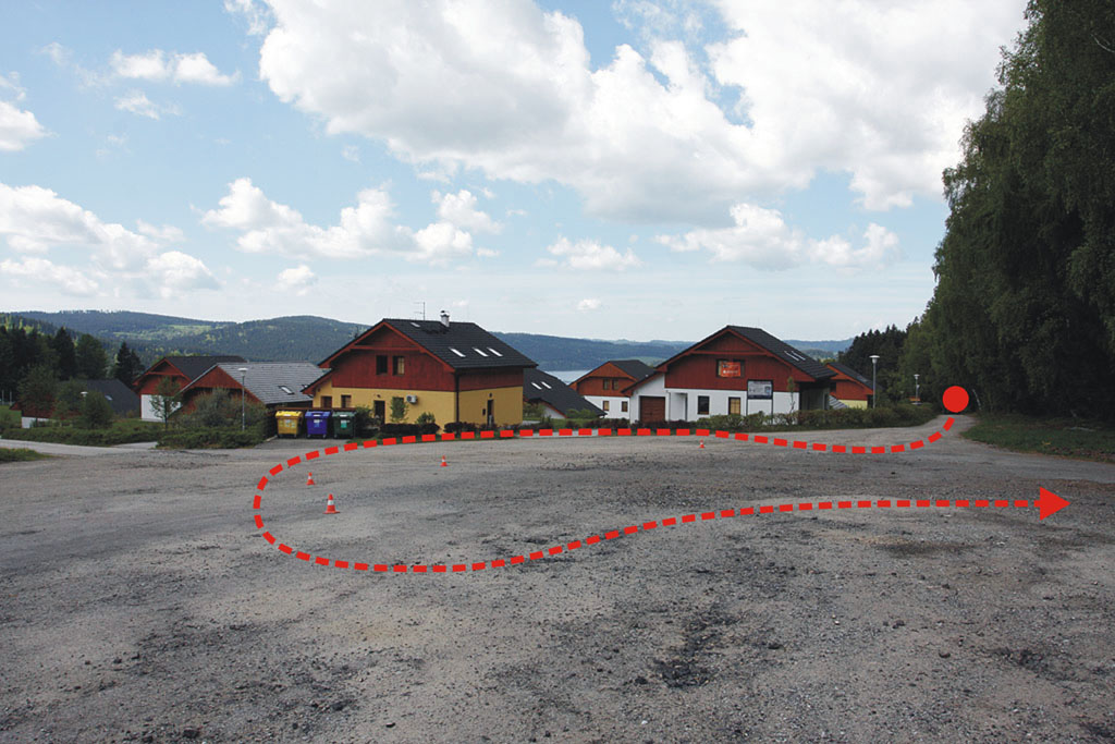 Ostrá levá zatáčka kolem balíku na starém parkovišti před Kramolínem. Pohodlný přístup z Lipna nad Vltavou.