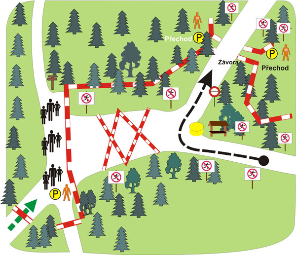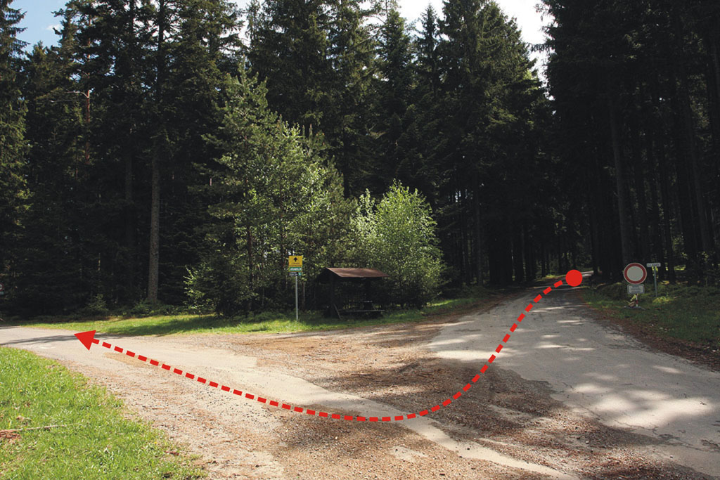 Pravé odbočení kolem balíku ve sjezdu z Kramolína od Stezky korunami stromů. Přístup pěšky snadno z horní stanice lanovky na Kramolín po určené trase nebo pěšky z Lipna nad Vltavou přes Slupečnou.