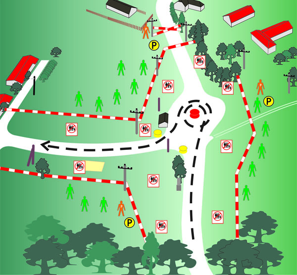 Zákaz stání na komunikaci – příjezdová trasa soutěžních vozidel na start RZ!