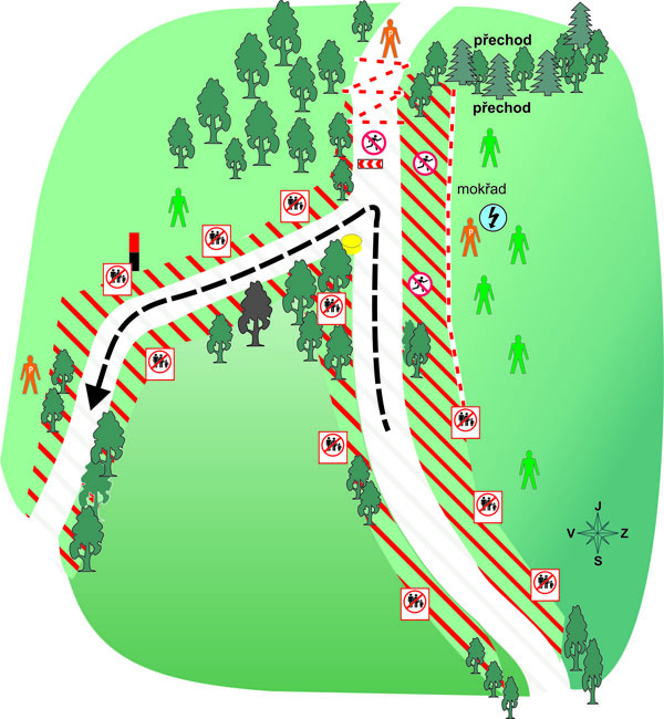 Parking in and ahead of Ličov. The road from Ličov will be closed – it is an evacuation route, thus accessible only on foot!